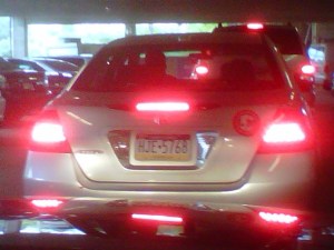 The bright spot today was my partial puppy escort to rads.  See the photo and yes ooooh and ahhh because baby is THAT cute.  The other photo is of the jackass du jour who mistook the hospital garage for a NASCAR track.  Also worth noting in the garage today?  The special place in hell that must be reserved for people NOT going to radiation parking in the parking spaces reserved for us rads kids.