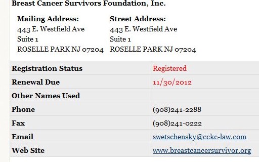 ROSELLE PARK NJ 07204 ) you come back with a doctor’s office (and some amusing reviews of said doctor).  Very curious indeed….because when I called that doctor’s office phone number  they gave me the phone number of this Breast Cancer Survivors Foundation to call.   They did not seem surprised to get a call for this “charity”.  I don’t know what to think….