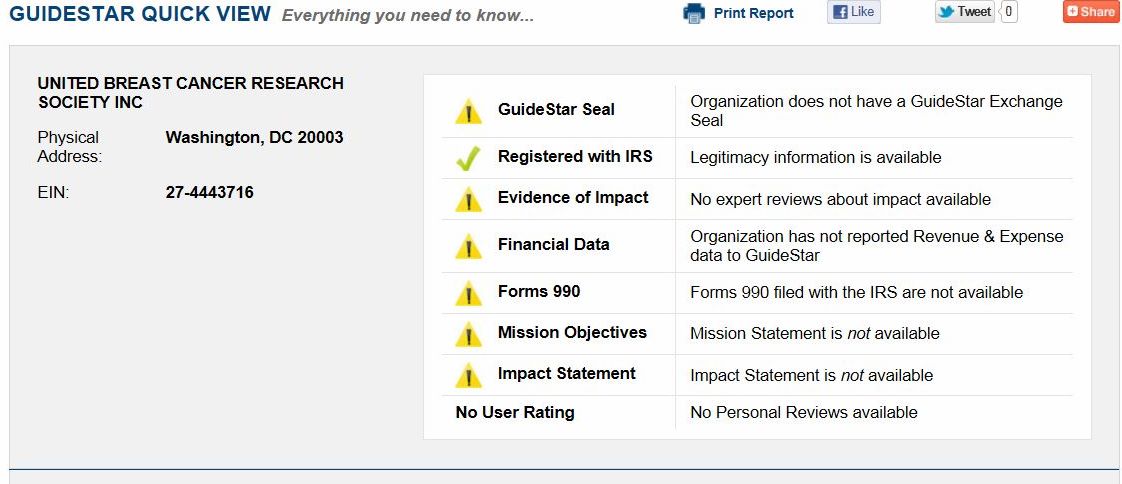 So I went to the web. Soon I will upload what I found on United Breast Cancer Reasearch Society. However, I will start with saying they have NO Guidestar seal. Washington State also has a blip on them – they note paid fundraisers and a bullshit mission blip from the charity “To promote research in areas of benefit to mankind with special reference to the healing arts. (Read more ) ”