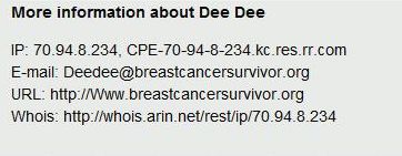 So I don’t know…this all seems weird to me…but what do I know?  I am just a breast cancer survivor….if you are going to donate to a breast cancer charity CHECK them out.  See what they have done.  Are they on GuideStar and in good standing? How do Better Business Bureaus and state charity offices perceive them?   Given ALL the comments about this charity under my original post am I really alone in my questioning this outfit and the founder?