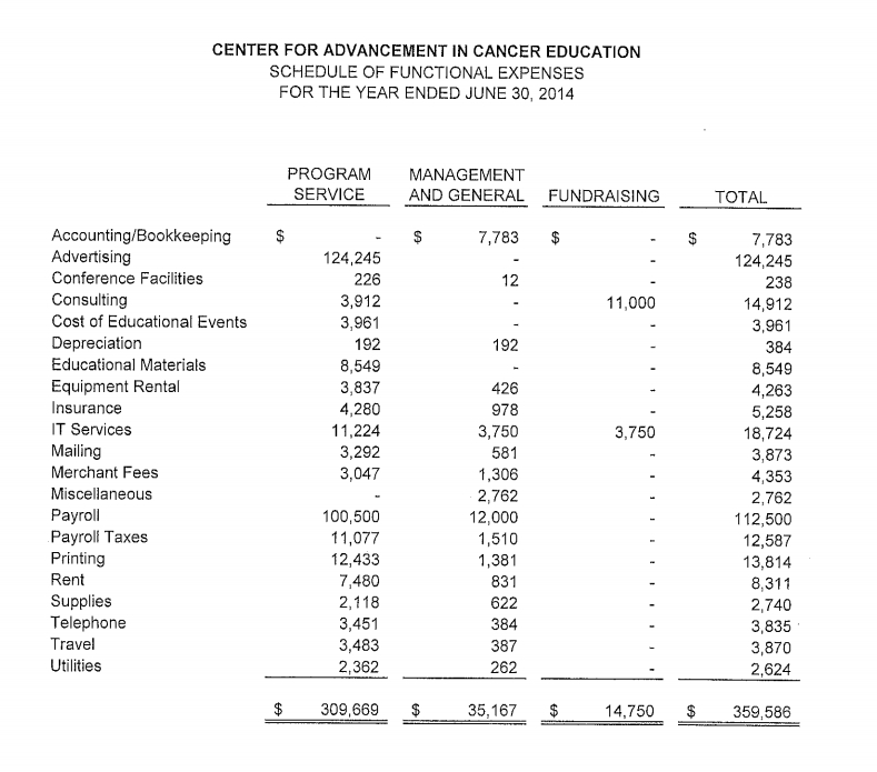 Beat Cancer AKA The Center for Advancement in Cancer Education Financials 2015