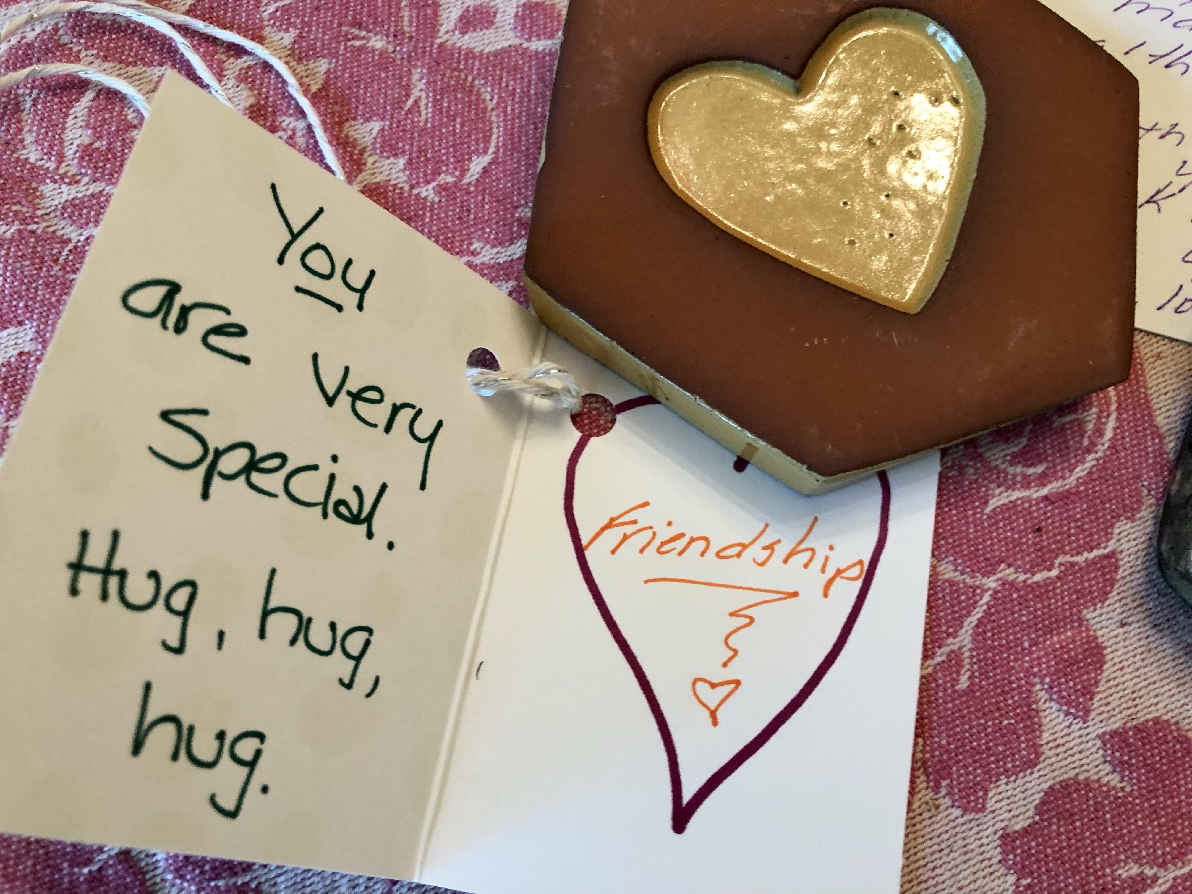 One of my high school friends, Meredith, left me a present this morning. And a card and notes that reduced me to tears. She left me a card, beautiful little notes, and a selection of tiles from Moravian Pottery & Tile Works Museum in Doylestown, PA. She would have had no way of knowing that I think that’s a super cool place and that I’ve always wanted some Moravian tiles of my own. The surround in my great aunts fireplace growing up was made of Moravian tiles. They were more monochromatic but I still remember that designs.