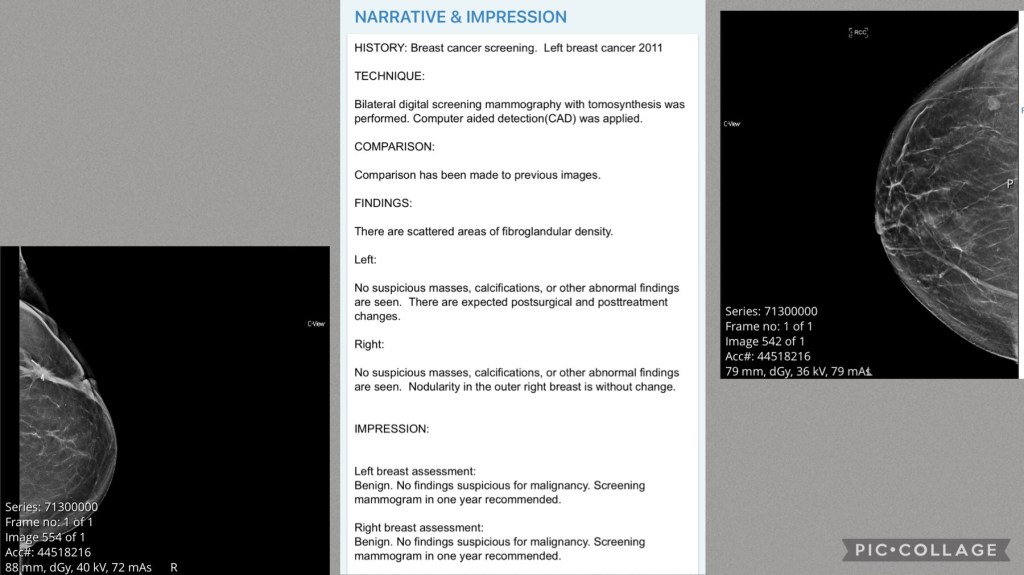And I will also say that I have friends that have had horrible breast cancers, some who live with metastatic breast cancer. They get up every day and they move forward because they want to fight and live their best lives.